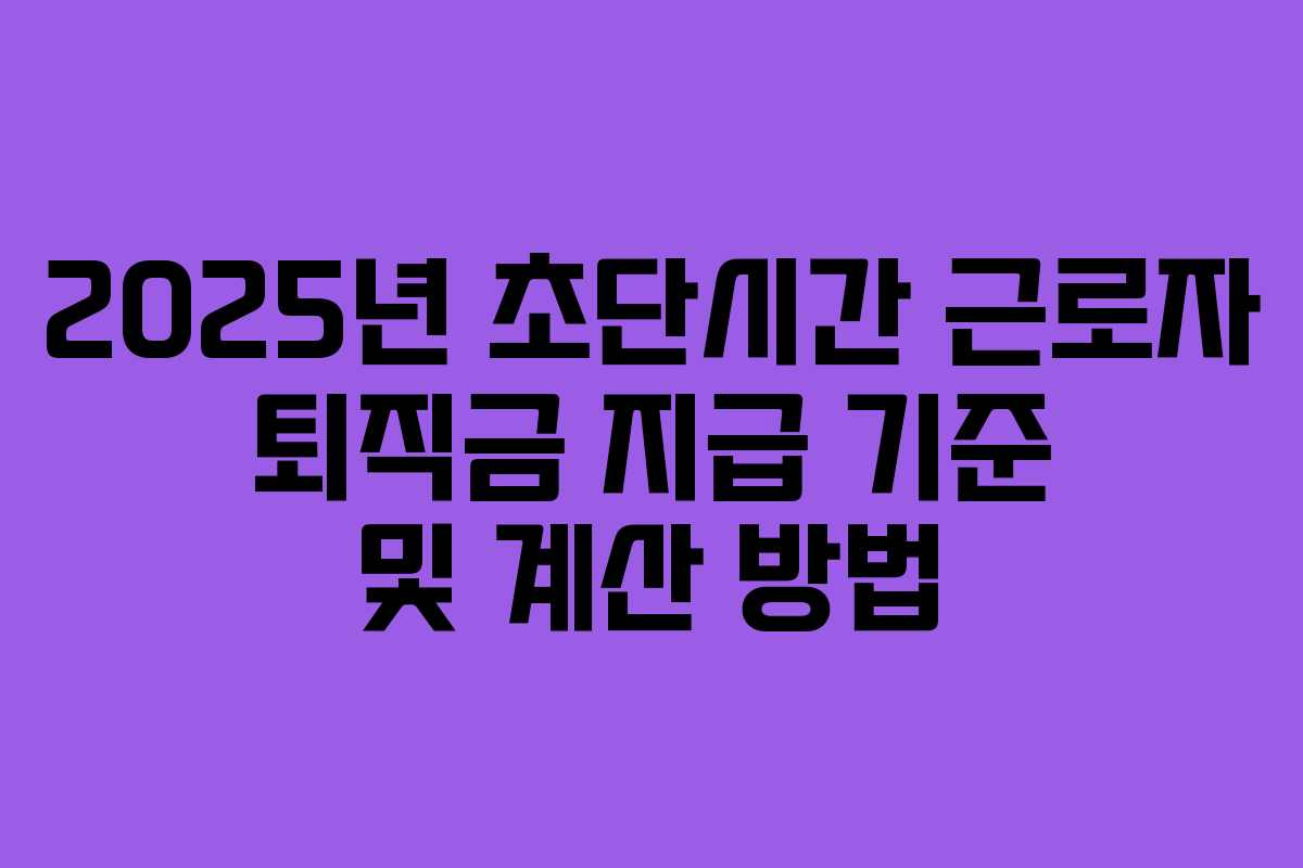2025년에는 초단시간 근로자의 퇴직금 지급 기준이 더욱 명확해졌습니다. 이 글에서는 초단시간 근로자에 대한 정의와 퇴직금 지급 여부, 계산 방법 등을 자세히 살펴보겠습니다.