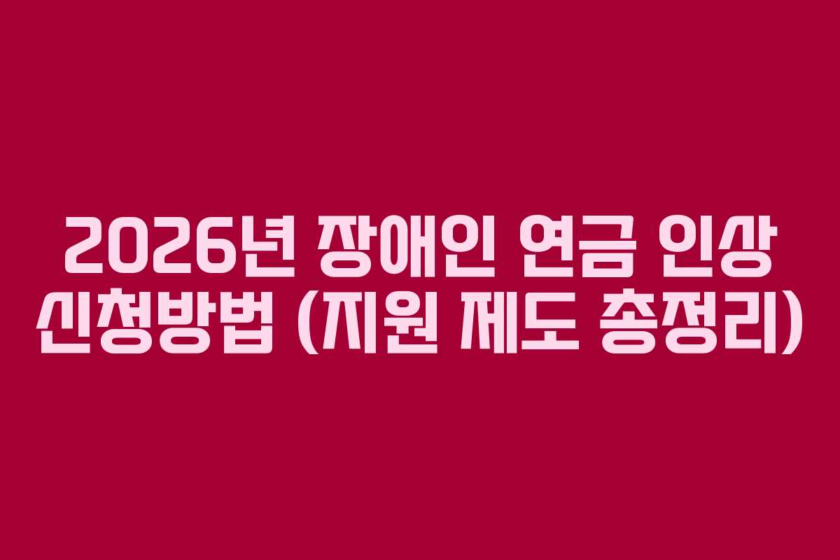 2026년 장애인 연금 인상 신청방법 (지원 제도 총정리)