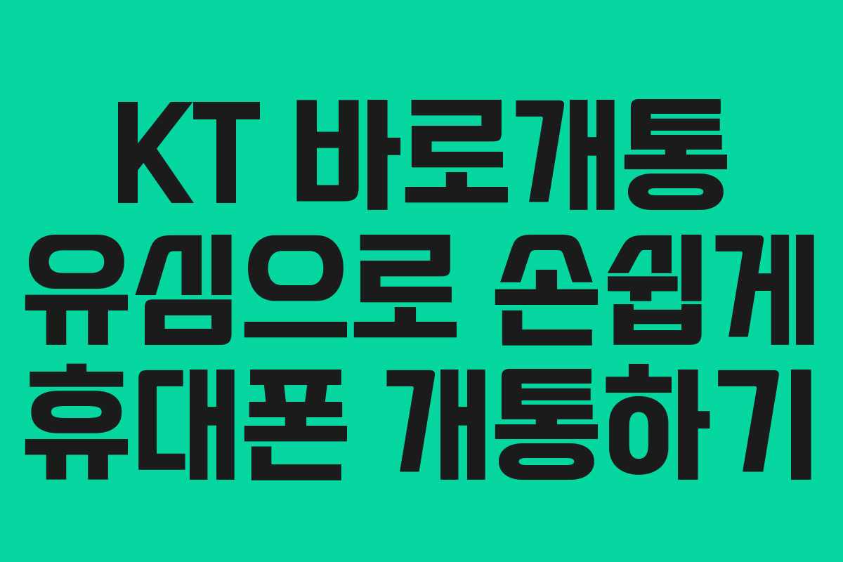 KT의 바로개통 유심 서비스는 번거로운 개통 절차를 간소화하여 누구나 쉽게 휴대폰을 사용할 수 있도록 돕습니다. 빠르고 간편한 개통 방식과 다양한 혜택 덕분에, 이 서비스를 활용해 보시는 것을 추천드립니다.