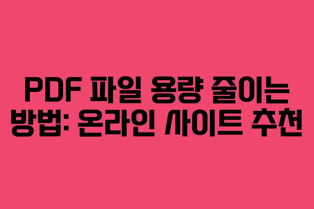 PDF 파일을 이메일로 전송할 때, 파일 용량이 너무 커서 곤란한 경험이 있으신가요? 이럴 때 PDF 파일을 압축하면 여러 번 메일을 보내는 번거로움을 피할 수 있습니다. 오늘은 온라인에서 간편하게 PDF 파일의 용량을 줄이는 방법과 추천 사이트를 소개합니다.